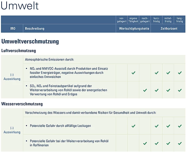 Zur Beurteilung der Auswirkungen, Risiken und Chancen wurden interne Unternehmensdaten, kontextbezogene externe Informationen sowie eine externe Expert*inneneinschätzung herangezogen. Zudem ist im Rahmen einer breit angelegten Online-Befragung die Sicht potenziell betroffener Stakeholder in die Wesentlichkeitsanalyse eingeflossen.